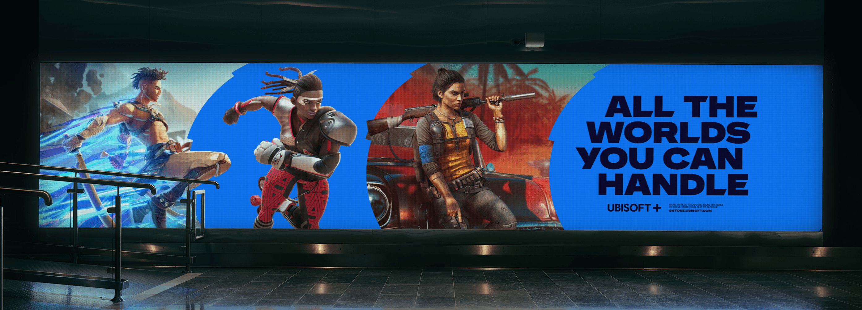 Partnering with the Ubisoft team to define their brand strategy, and show players that with Plus 'One World is Never Enough' with a new toolkit, typeface, 3D asset generator tool, and a new sonic identity.